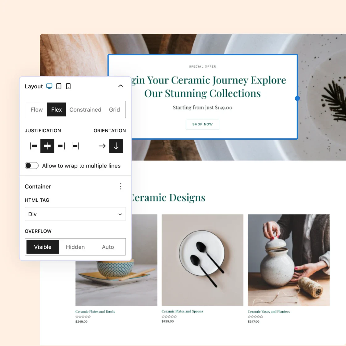 Spectra AI helps you generate content, customize pages, and build dynamic designs.