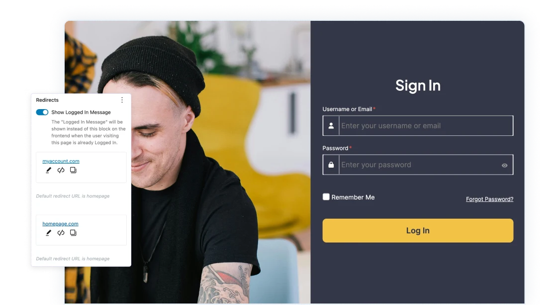 Use Spectra’s login form block to create user-friendly and secure login experiences for your website visitors