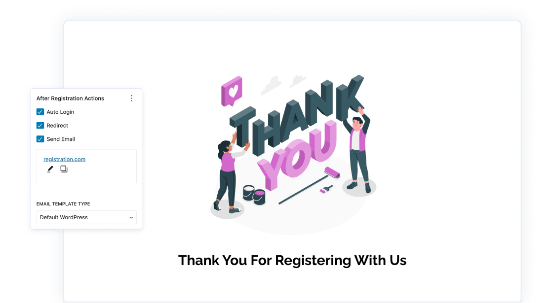 Want to redirect new users to another page after registration? Want to help them auto-login into their account? Or send an email to their inbox? Spectra makes it possible.