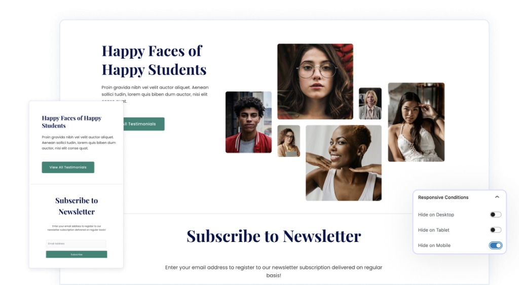 Define when and where your content appears. Choose to show or hide specific blocks based on the device visitors use to guarantee a flawless experience.