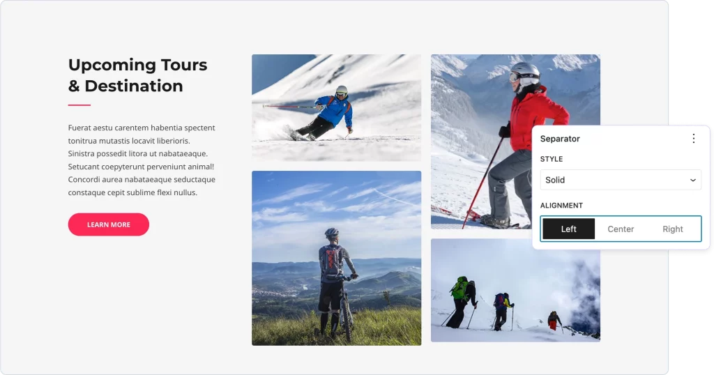 Give your pages a clean, structured look with Spectra’s Separator Block. It lets you add elegant dividing elements that visually break up content.