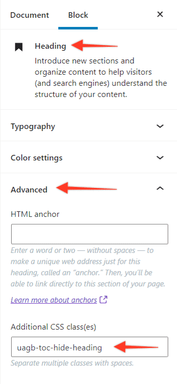 You might have a requirement in certain cases where you need to hide the heading from the table of contents. We have made it possible in our Spectra’s Table of Contents block to exclude the unnecessary headings from the table.