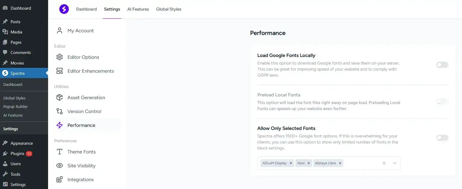 These settings control how fonts work across your entire website – not just Spectra blocks!