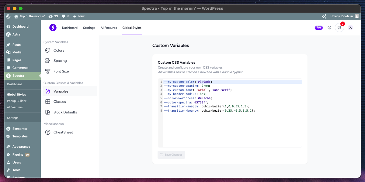 The Global Styles Extension transforms the Gutenberg block editor by adding a powerful styling panel to every Spectra block. This extension provides instant access to pre-built CSS classes, system variables, and custom styling options without leaving the editor. It bridges the gap between the Global Styles Admin Dashboard and actual block styling, making professional design accessible to all users.