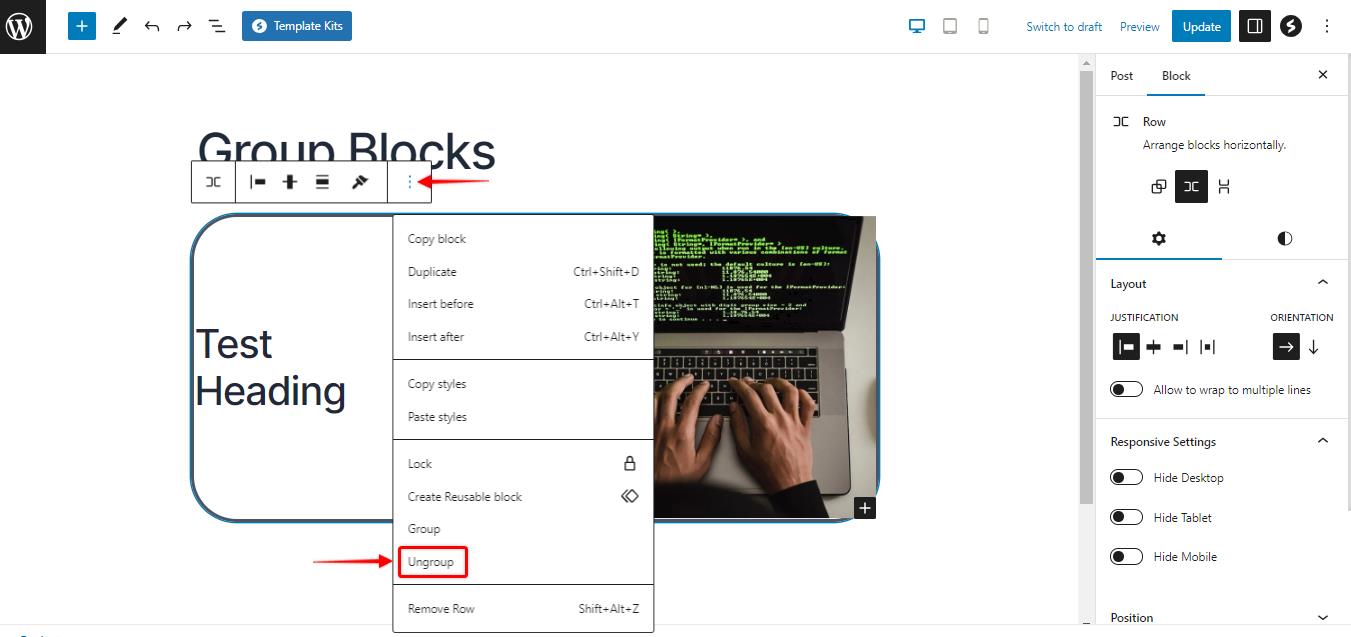 1. Ungrouping: If you need to separate the blocks within a group, select the group block and choose the “Ungroup” option from the “Block” menu. This action will revert the blocks back to individual elements.