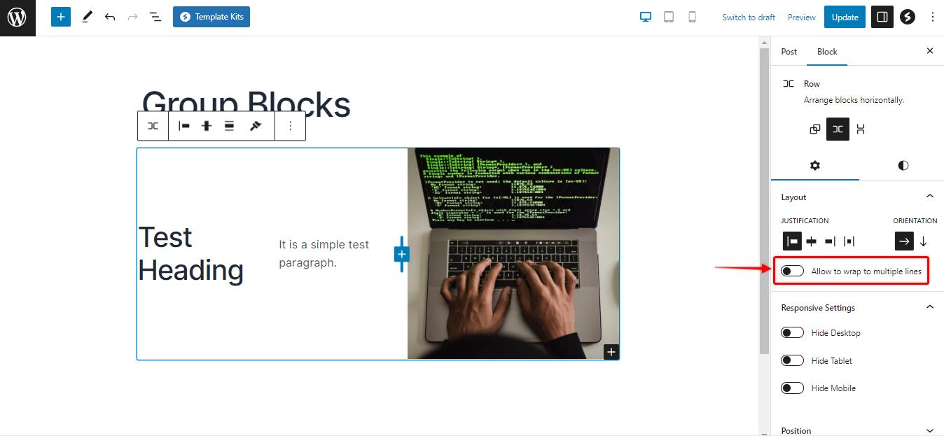 4. Wrapping Multiple Lines: If you have multiple lines inside the group block, by enabling this option, you will be able to wrap them up in a single line.
