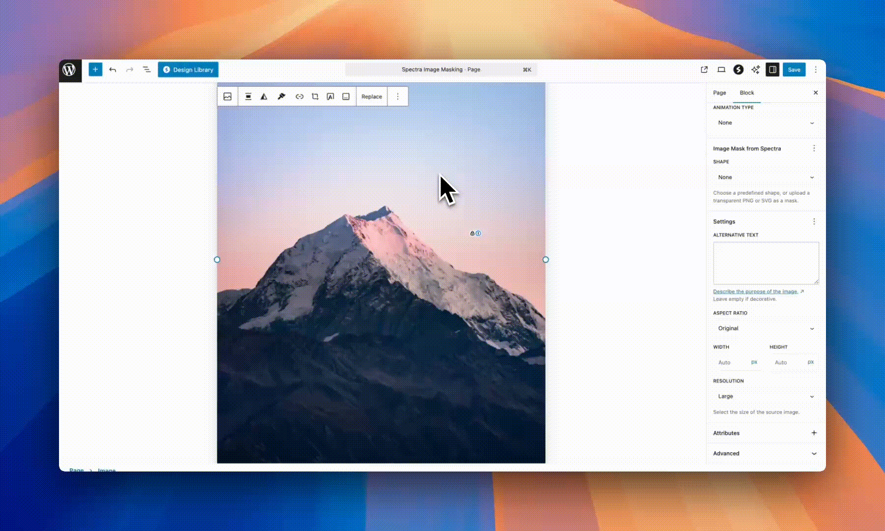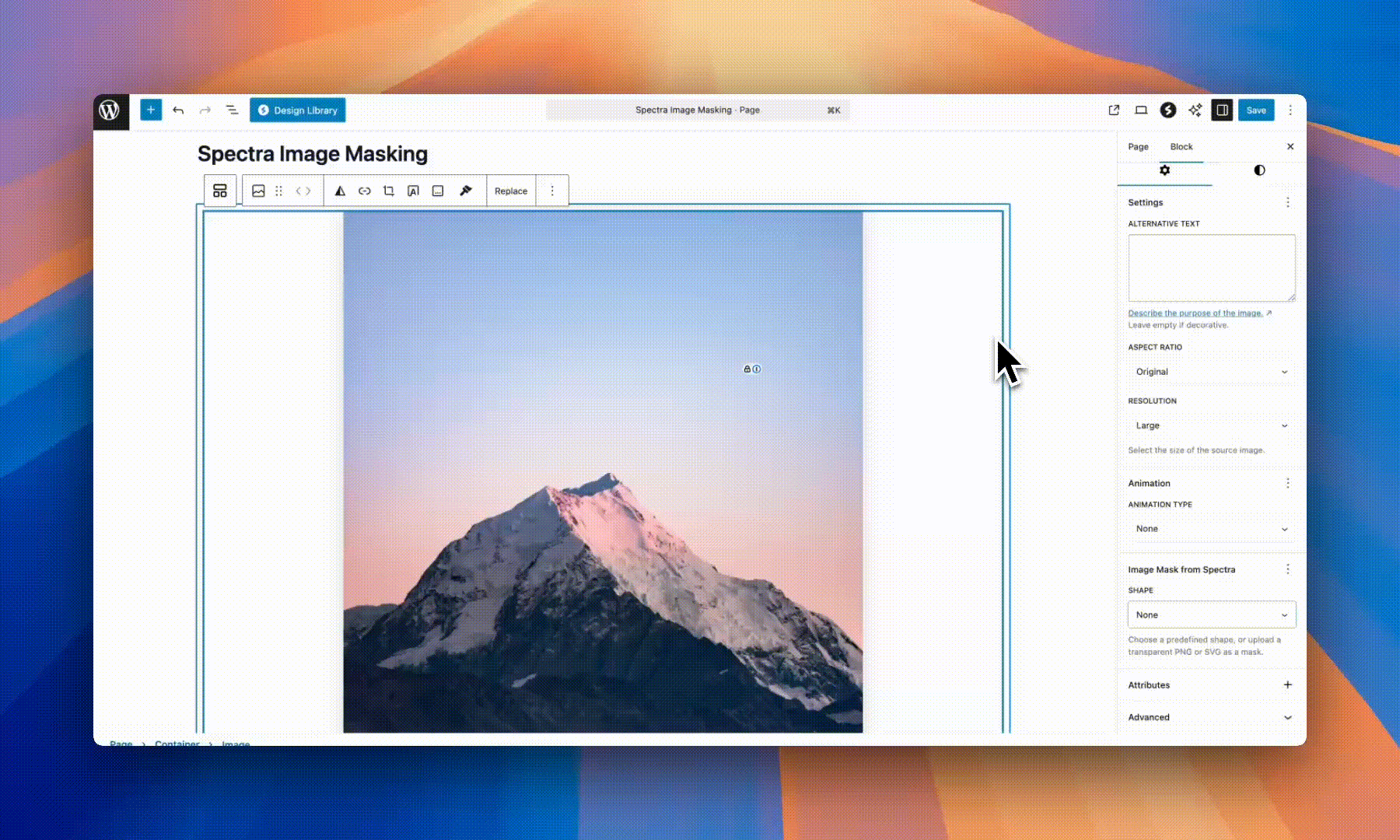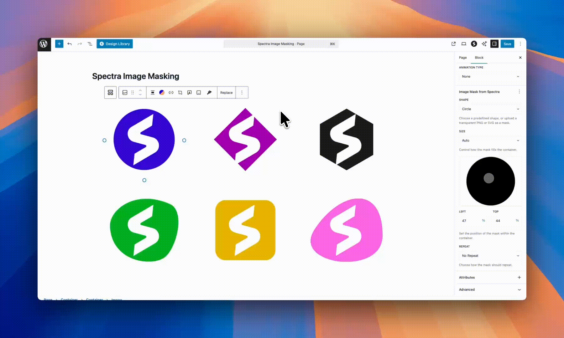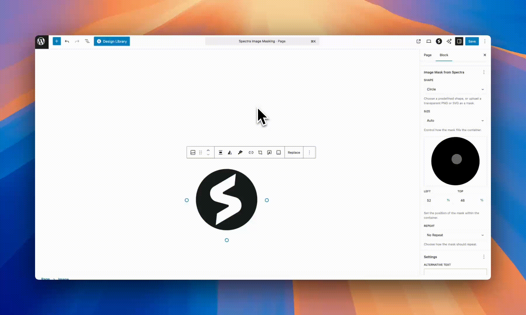 - The mask options appear in the block settings