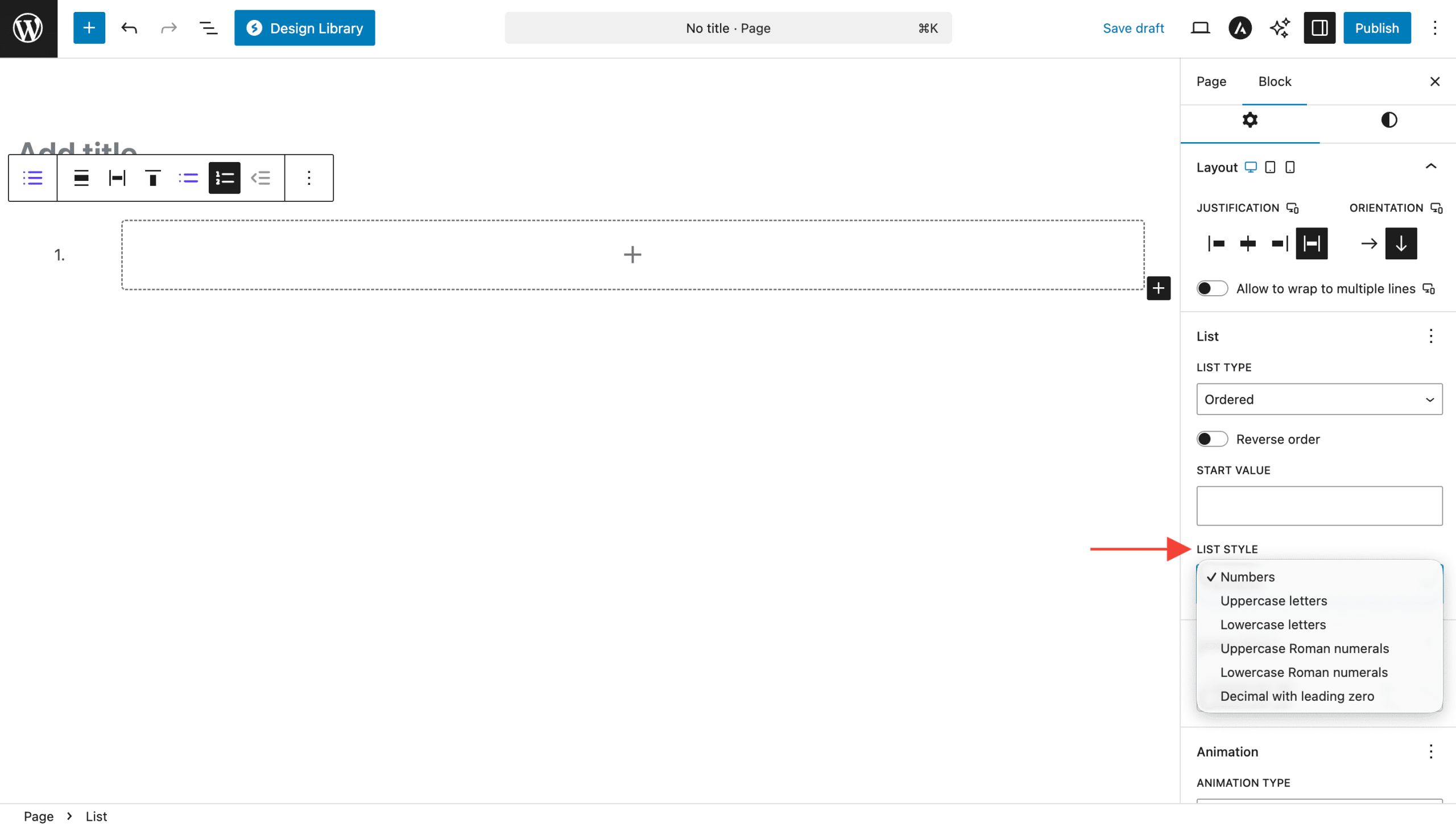 | List Type | Choose list format | Unordered (bullets), Ordered (numbers) |