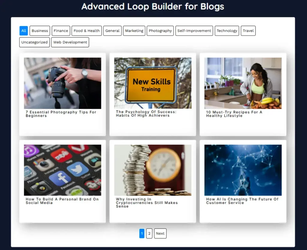The Loop Builder automatically displays your latest posts. Customize the query, add filters, and style your layout using the comprehensive settings panels.