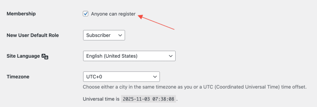 - Check if user registration is enabled in WordPress settings