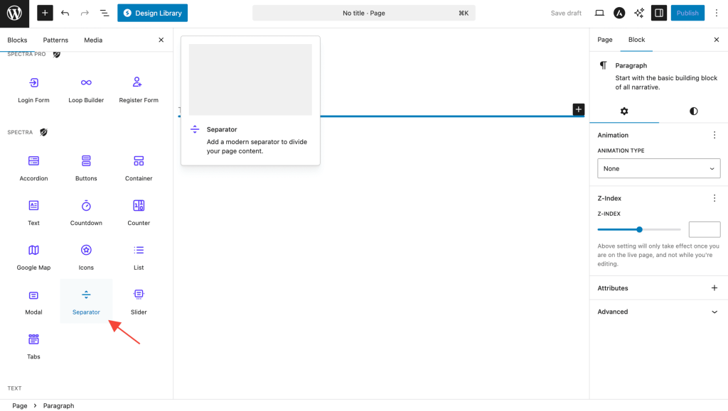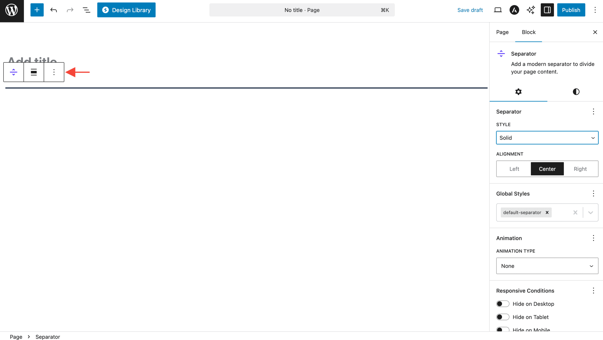- Click on the Separator Block to add it
