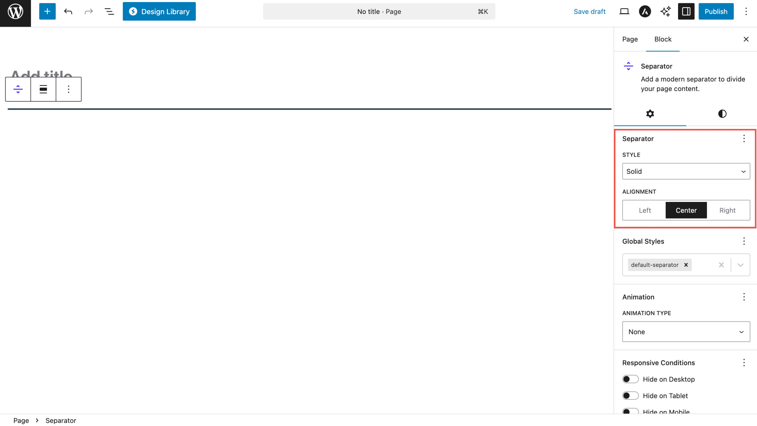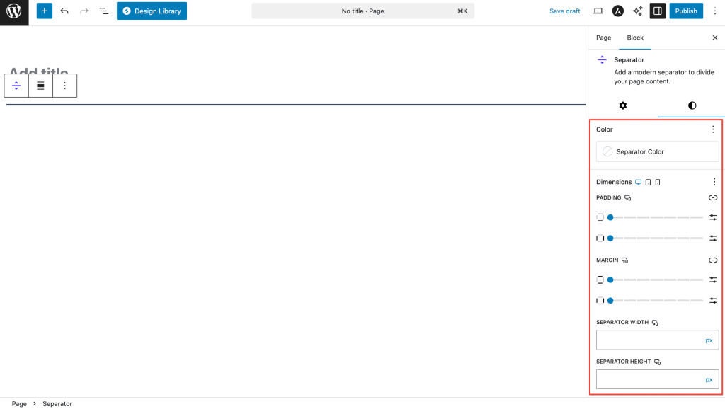 The Separator Block provides three main categories of styling options: