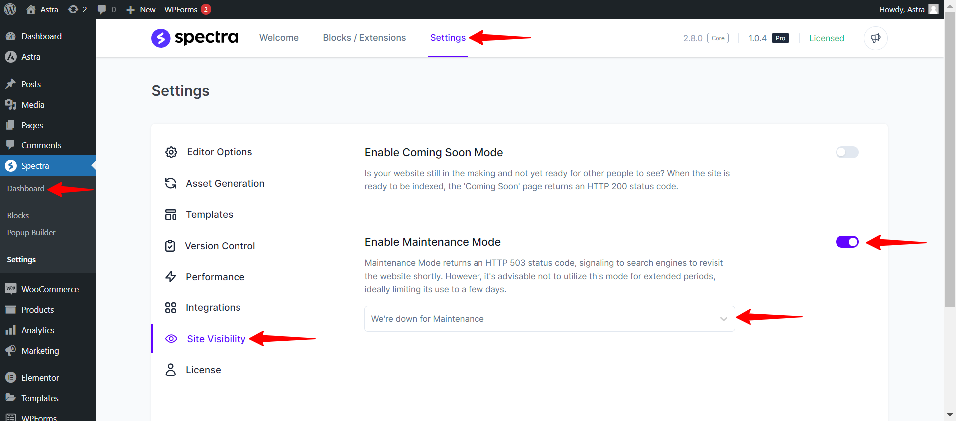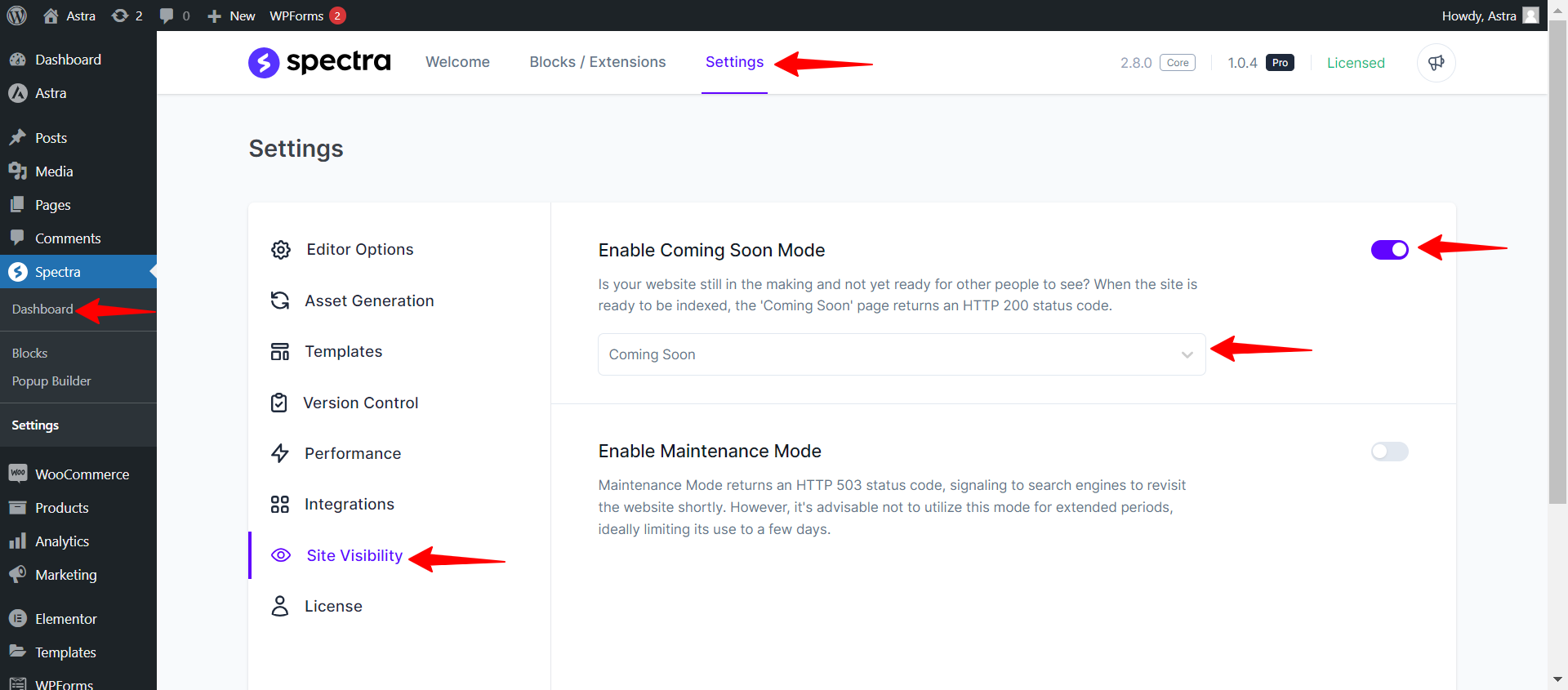 Once you have installed and activated the Spectra plugin on your website, setting up “Coming Soon Mode” and “Maintenance Mode” is a straightforward process.