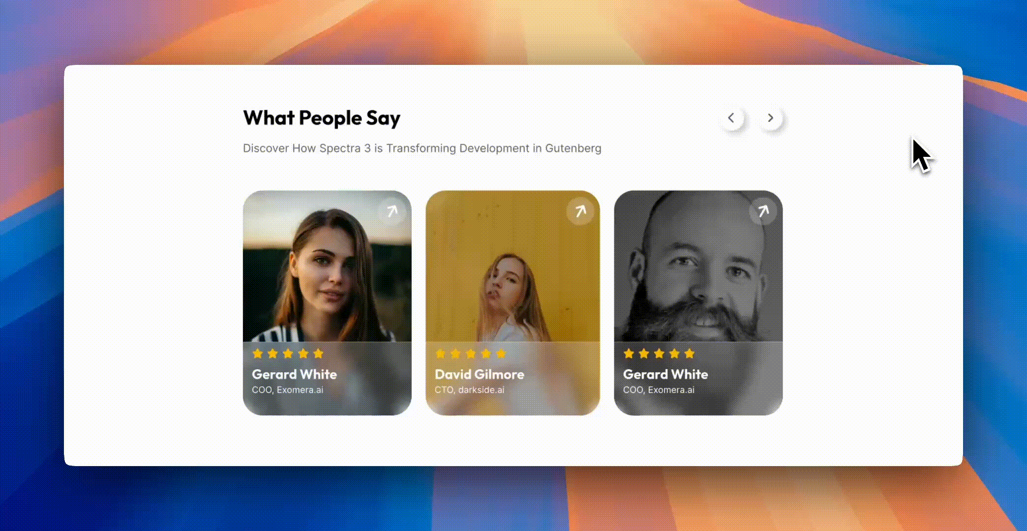 The Slider Block creates dynamic, responsive carousels for showcasing content, images, testimonials, or any combination of blocks. Built on the powerful Swiper.js library, it offers smooth transitions, touch support, and extensive customization options. Perfect for hero sections, product showcases, testimonial carousels, or any content that benefits from sequential presentation.