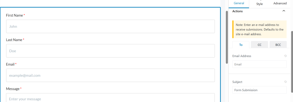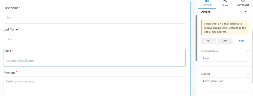 • Additionally, you can include “CC” and “BCC” email recipients as well as an email subject for form submissions.