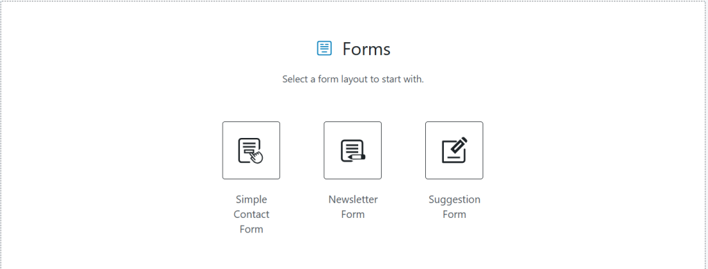 • Select the type of form template to start with. For this example, we’ll go with “Simple Contact Form”.