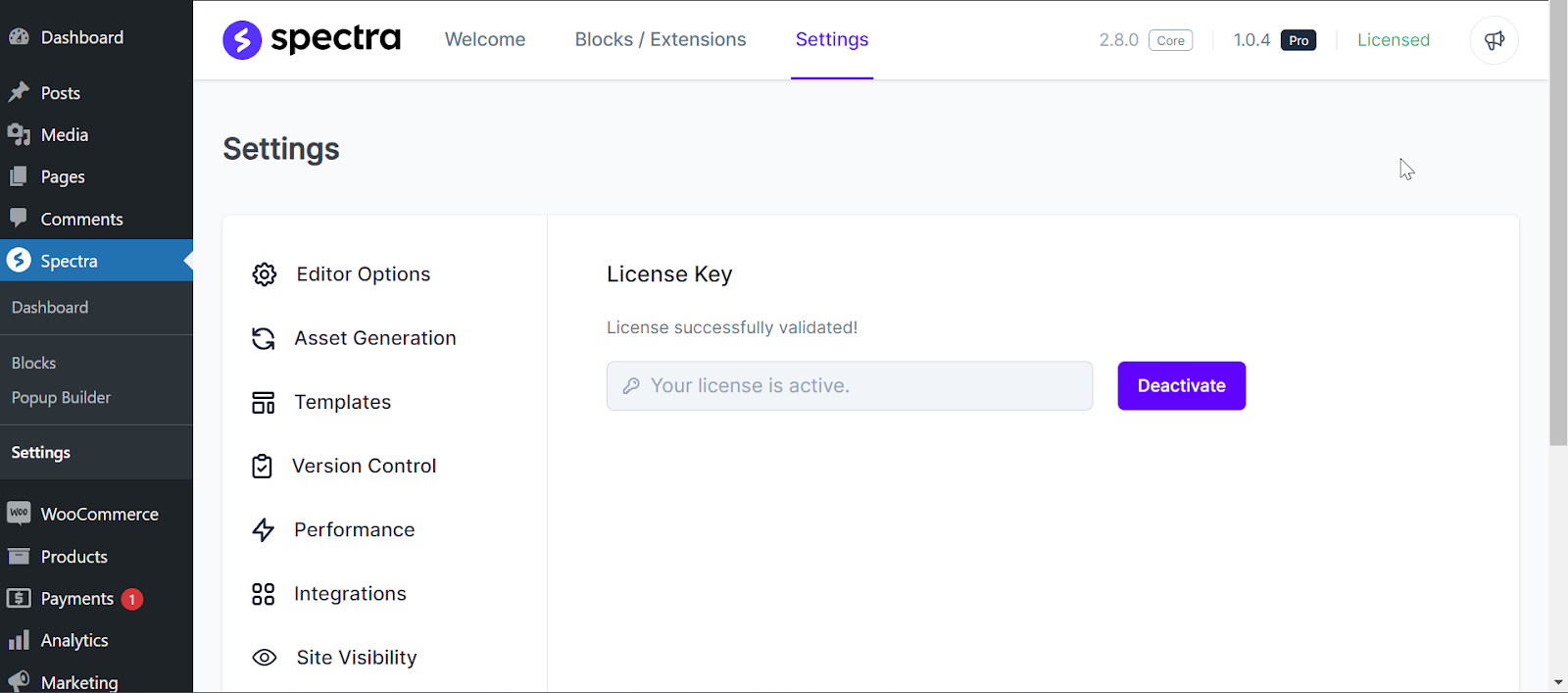 Then, you can follow these steps to add Spectra Pro’s license key to your site: