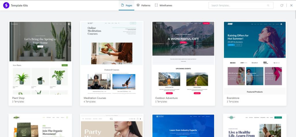 Step 1 – Navigate to Dashboard > Pages > Add New. In the top menu of the page editor, click on the “Spectra Templates” button. This will open the Spectra Templates Library;
