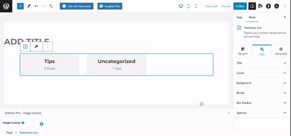Under the Style tab, you can style your Taxonomy block to match your website styling with the following options —