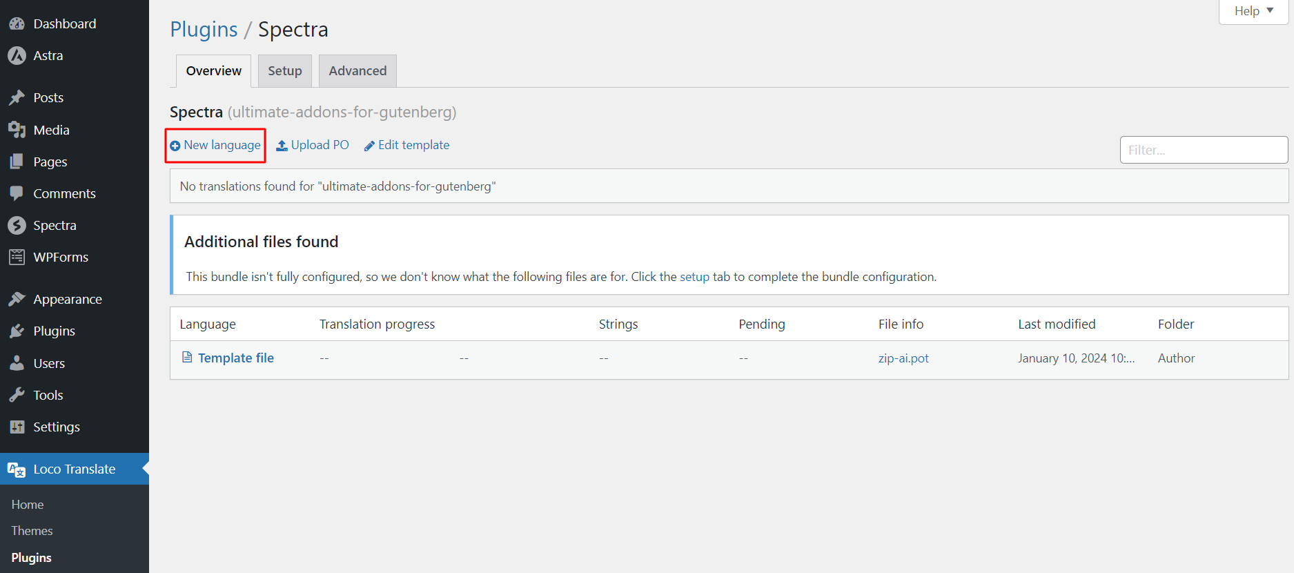 Translating Spectra plugin strings is a straightforward process with Loco Translate. Ensure that you have added Loco Translate to your website before proceeding.