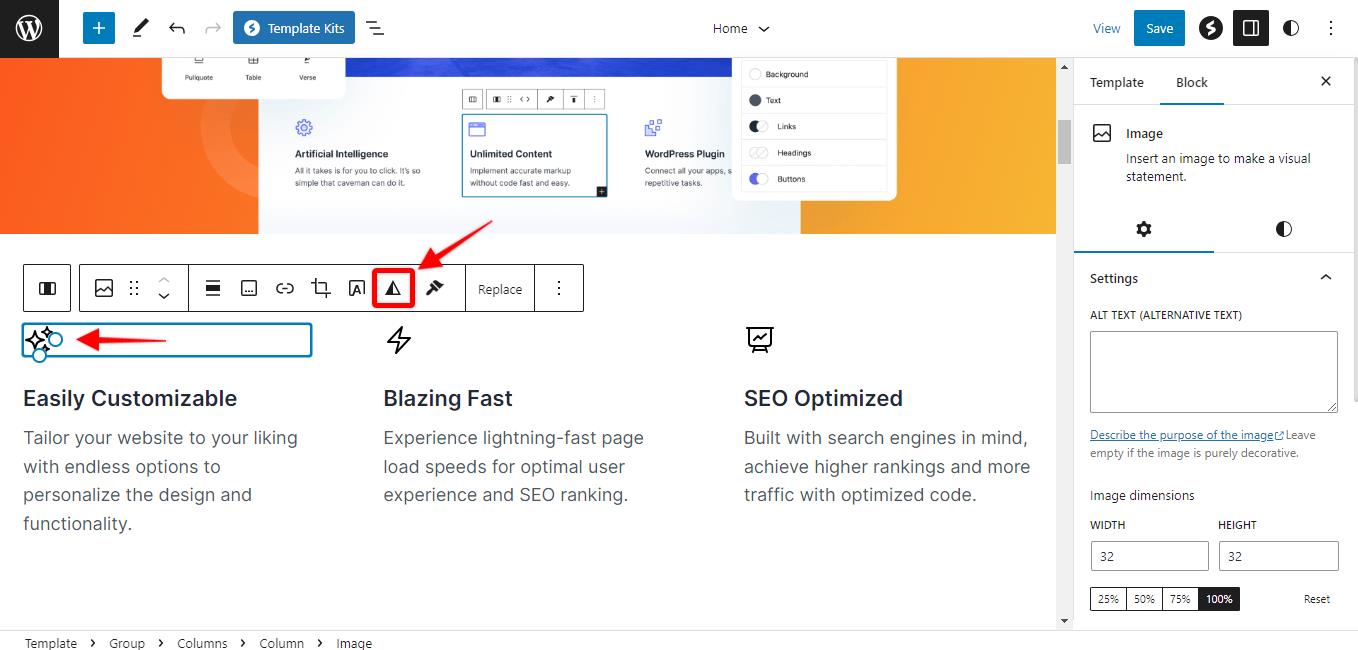 Step 1: Select the SVG icons on the page where you need to use the Duotone settings