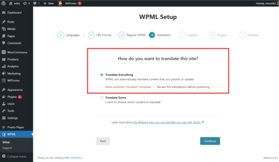 Step 2: Complete WPML Setup Wizard